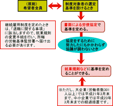 継続雇用制度の対象者選定の基準は、原則的として、労働間の十分な話