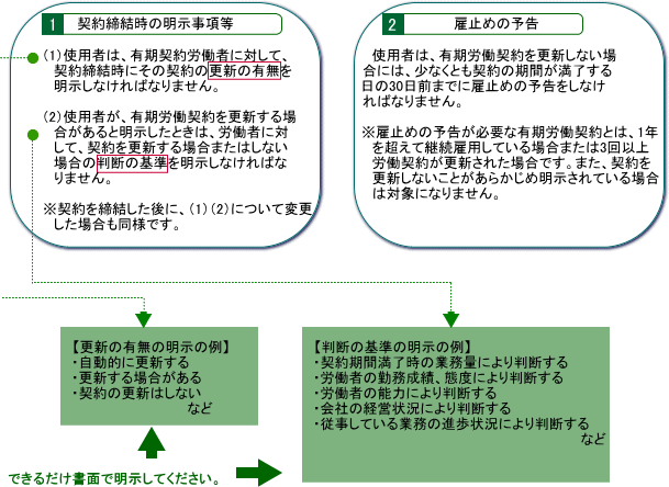 更新の際あるいは雇止めをする場合の留意点が示されています。