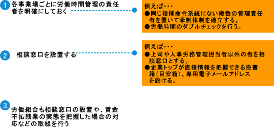 0523004号)では、次のように、事業場で労使が賃金不払残業の解消や防止に向けた取組を行うた